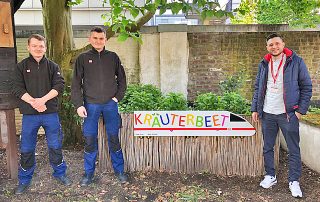Mit einer neuen Beschriftung für das Kräuterhochbeet überraschten uns später noch Vincent van Berck und Mario Franica aus dem 3. Lehrjahr mit ihren Ausbilder Ayhan Yilmaz (Bild 2).