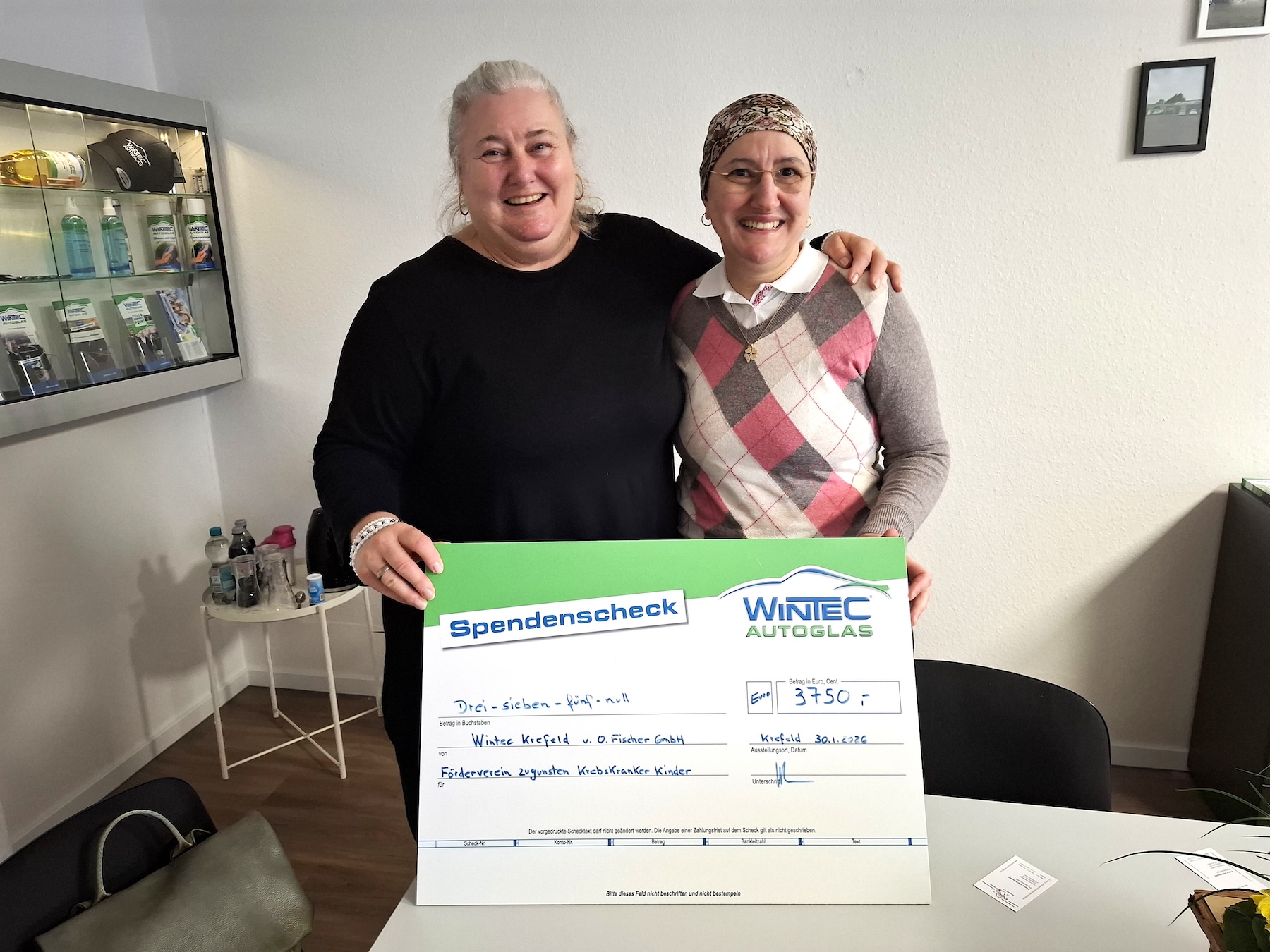„Uns ist es wichtig, vor Ort Gutes zu tun und den Schwächsten unserer Gesellschaft, nämlich schwer erkrankten Kindern, zu helfen. Das ist ein echter Herzenswunsch“, betonte Ernst Wehrmann, kaufmännischer Geschäftsführer von Wintec Autoglas, als er zusammen mit Betriebsleiter Patrick Lutterbeck und Oliver Fischer vom gleichnamigen Reifen- und Pannenservice den symbolischen Spendenscheck an den Förderverein zugunsten krebskranker Kinder Krefeld übergab. Den nahmen Geschäftsstellenleiterin Sevda Aytekin und Susanne Oestreich, Leiterin des Elternhauses „Villa Sonnenschein“, strahlend entgegen.